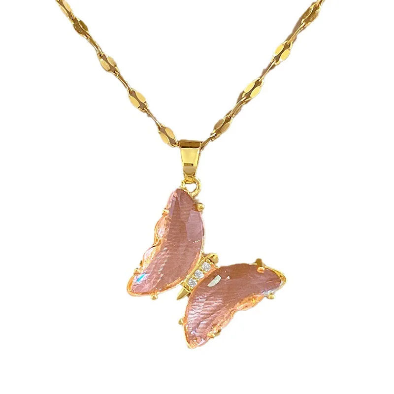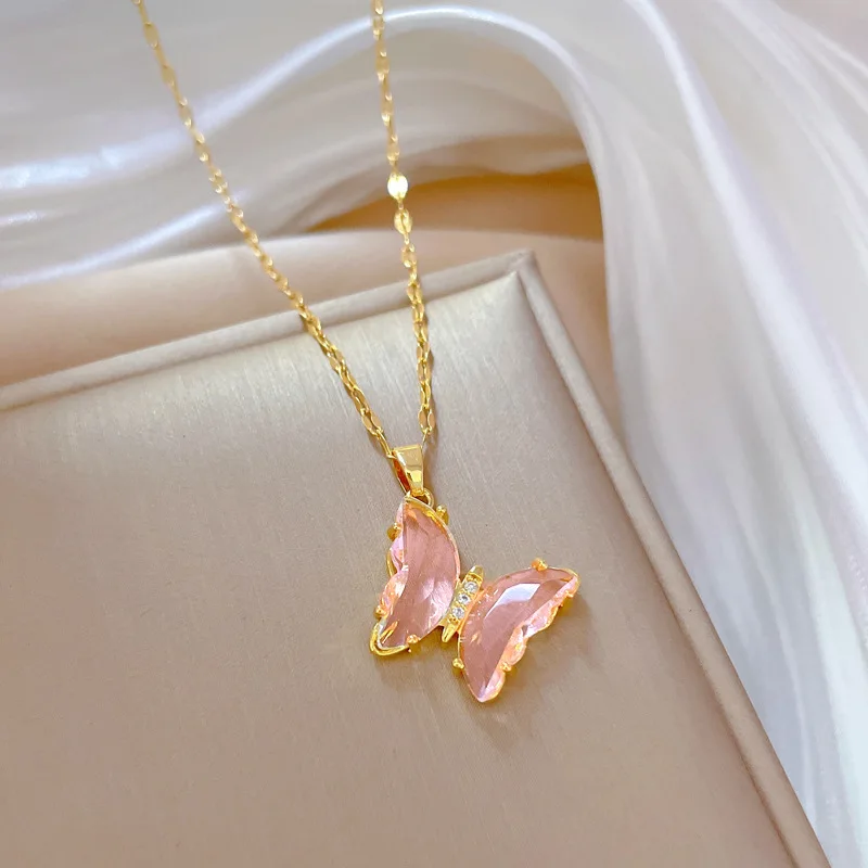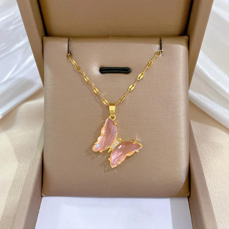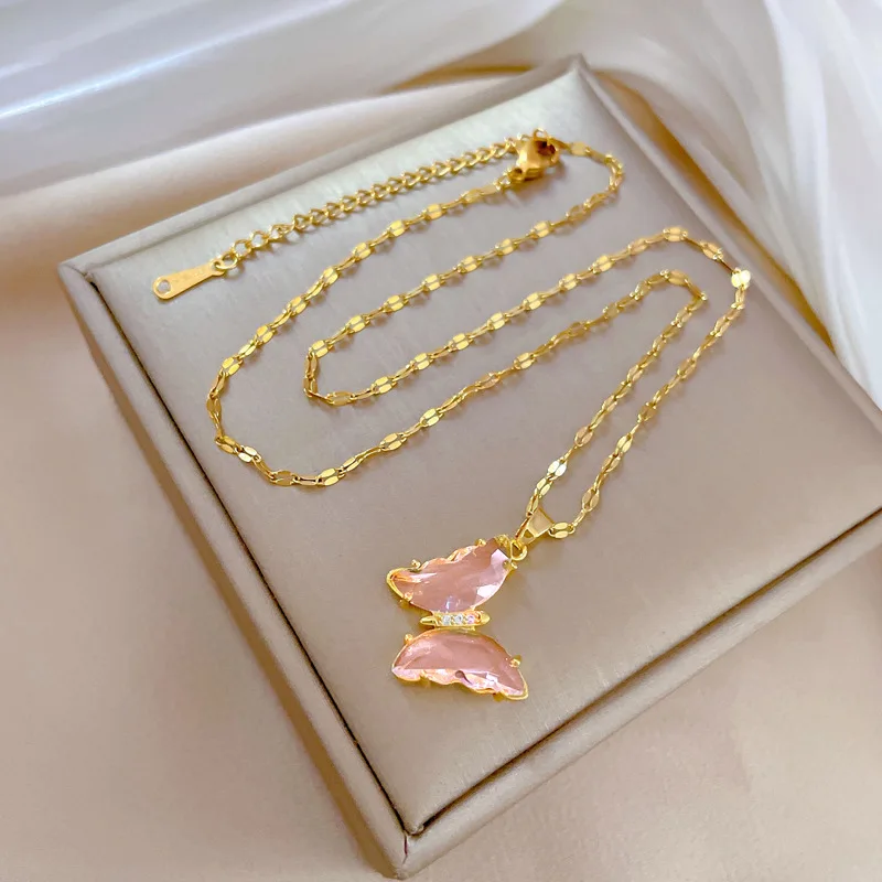 Home » Shop » Fashion Trendy Stainless Steel Elegant and Exquisite Pink Zircon Butterfly Necklace For Women Jewelry Wedding Party Premium Gift